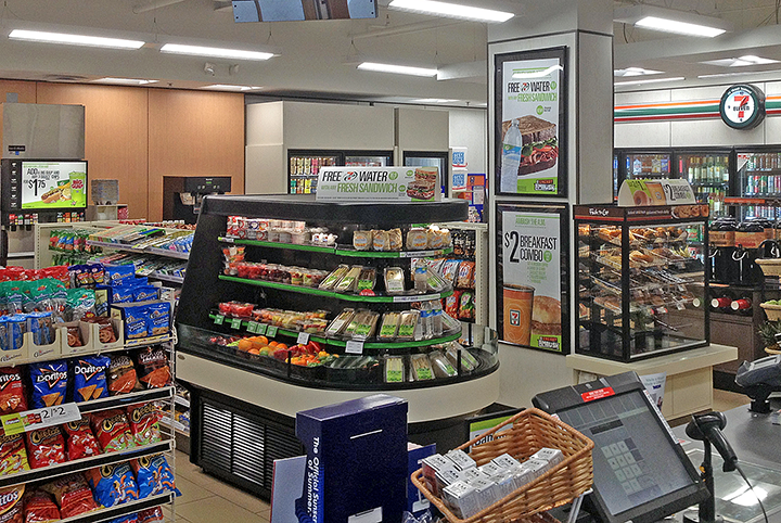 This store is unique and provides a “Market” friendly atmosphere with fresh vegetables, fruit, eggs, milk and cheese. Stop by this home town, old fashion general store with a fresh modern interior and where the staff is always friendly. Oh thank heaven 7-Eleven!.