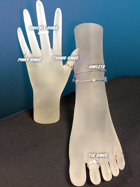 Deborah's has Custom Toe Rings, Anklets, Thumb Rings & More. The Toe Rings are a complete circle, I fit it on you to be worn all the time, they are very comfortable, you don't even feel them. They are sterling silver or gold filled. I make the Anklets in sizes 7-12, to fit anyone.
